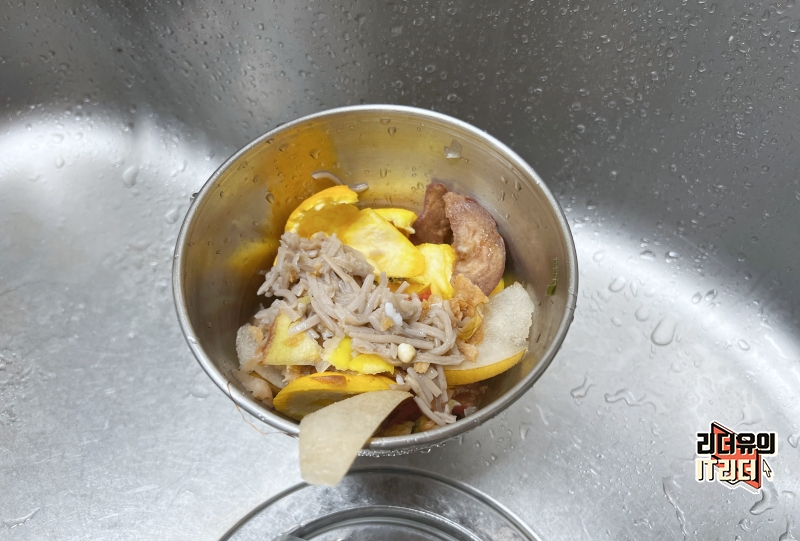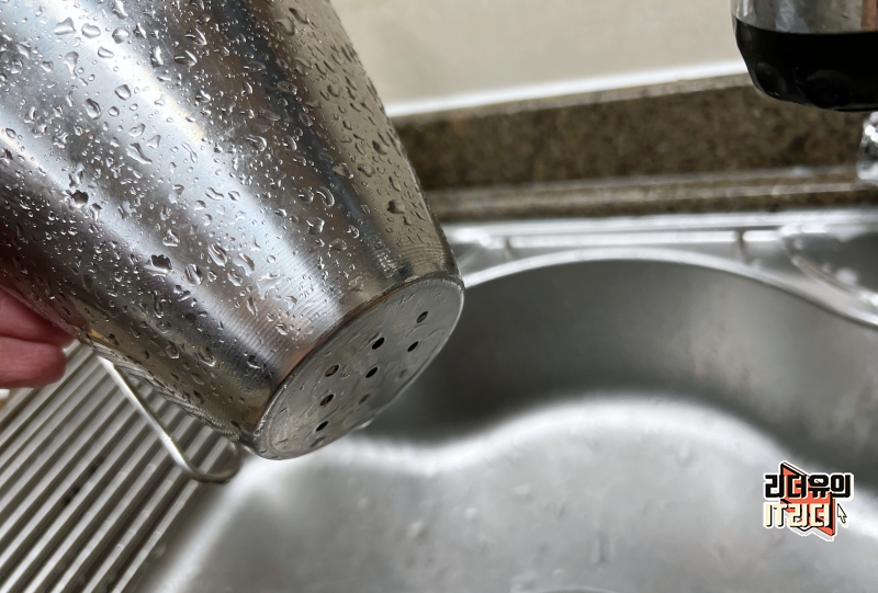 그래서 저는 이런 음식물 쓰레기통을 사용합니다. 음식물을 넣고 물기에 빠지게 되어 있거든요.