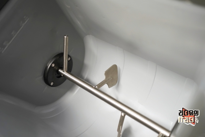 웰싱 미생물 음식물처리기 안쪽은 이렇게 되어 있습니다. 안쪽에 메탈로 되어 있는 것이 믹서봉인데요. 믹서봉이 돌면서 음식물쓰레기와 미생물 제제를 고르게 섞는 역할을 하게 됩니다.