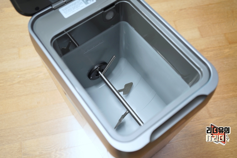 웰싱 미생물 음식물처리기 안쪽은 이렇게 되어 있습니다. 안쪽에 메탈로 되어 있는 것이 믹서봉인데요. 믹서봉이 돌면서 음식물쓰레기와 미생물 제제를 고르게 섞는 역할을 하게 됩니다.