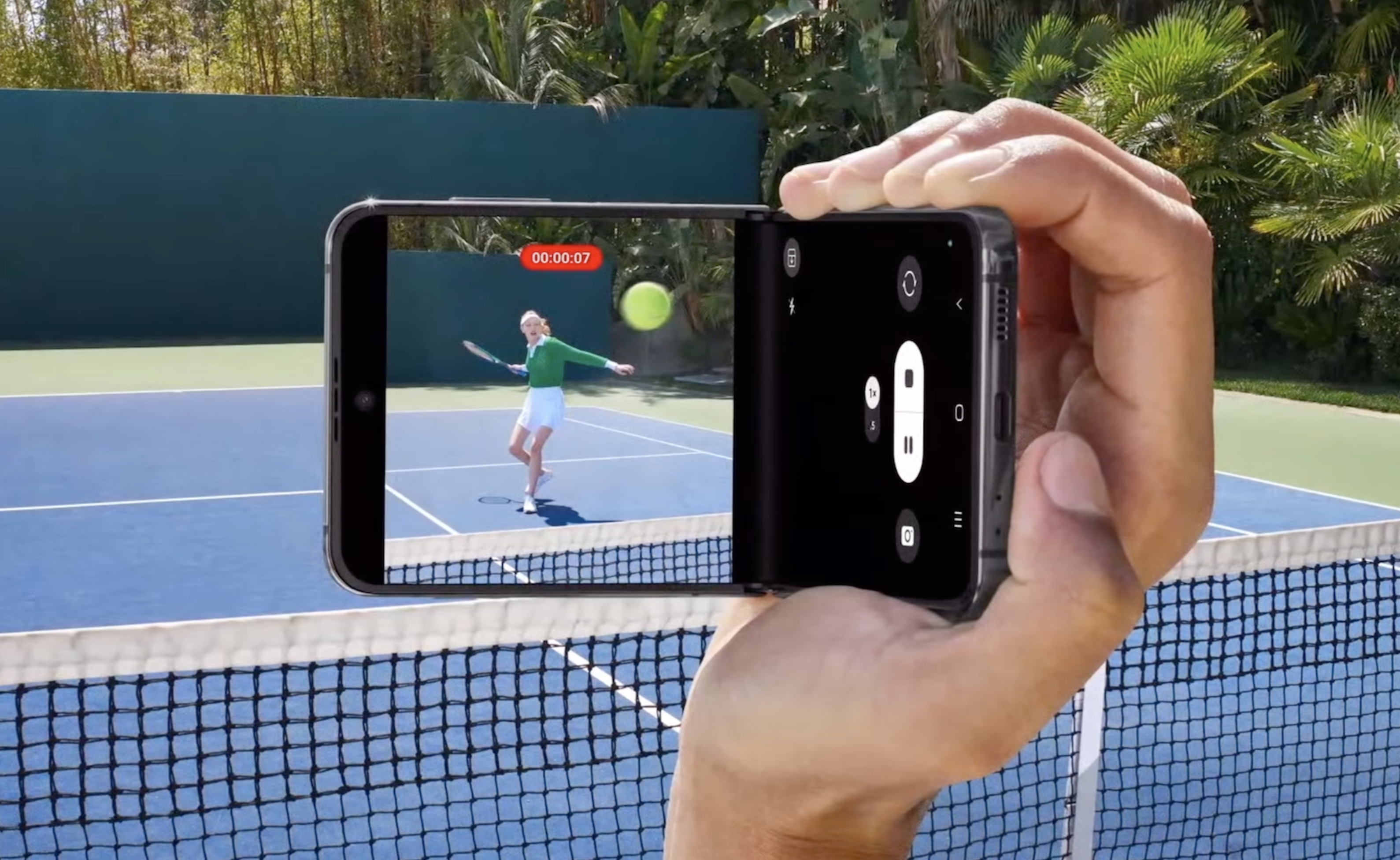 그리고 카메라 활용도를 높일 수 있는 플렉스 모드(Flex mode)를 강조해서 보여줬습니다. 스마트폰을 반 접어서 사용하는 모드인데요. 갤럭시Z 플립4만의 새로운 촬영 모드를 더욱 적극적으로 사용할 수 있게 했습니다.