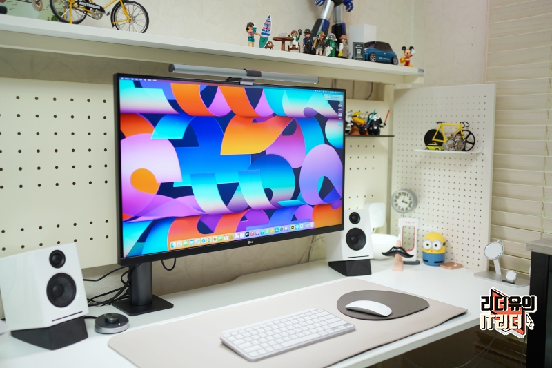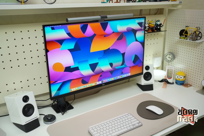 32인치 모니터에 연결한 모습인데요. 전체적으로 빛이 퍼지기 때문에 모니터 전체 영역을 충분히 커버할 수 있고 깔끔한 사용성을 보여주고 있습니다.