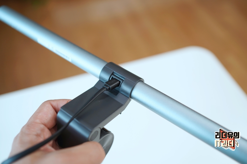 벤큐 스크린바 플러스 아이케어 e리딩 LED 스탠드 모니터 조명 설치는 너무나 간단합니다. 먼저 모니터 클립에 조명에 장착해 줍니다. 클립 뒤쪽에는 USB-C 타입 단자가 빠질 수 있는 구멍이 있으니 이 영역에 맞춰서 장착을 하면 됩니다.