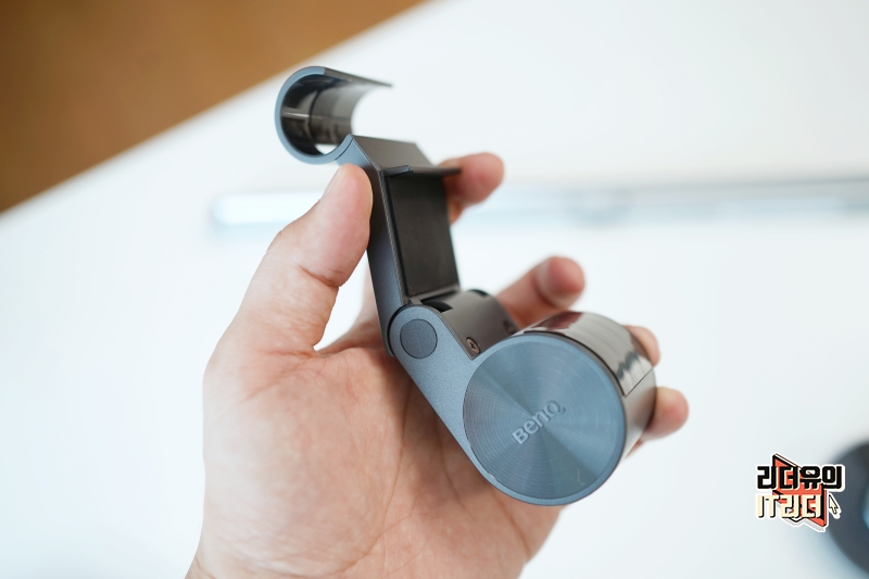 조명을 연결하는 부분은 그냥 밀어서 넣어주는 구조로 되어 있습니다. 그리고 벤큐(BENQ) 브랜드 표시로 프리미엄 모니터 조명이라는 것을 보여주고 있습니다.