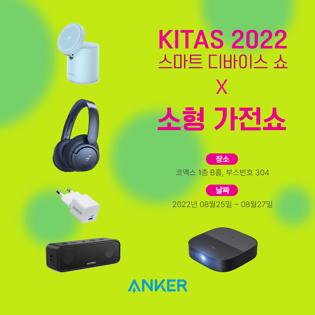 키타스 2022 (KITAS 2022) 볼거리는 아무래도 매력적인 액세서리 브랜드가 나오는지와 다양한 할인 판매가 될 것입니다. 수많은 브랜드가 나오겠지만 그 중 가장 주목해 볼 브랜드는 앤커(ANKER)가 될 것 같습니다. 모바일 충전 기기 분야에서 최고의 브랜드이고 전세계적으로 인정받는 제품들이 많으니 좋은 제품을 만날 수 있는 기회가 될 것입니다.