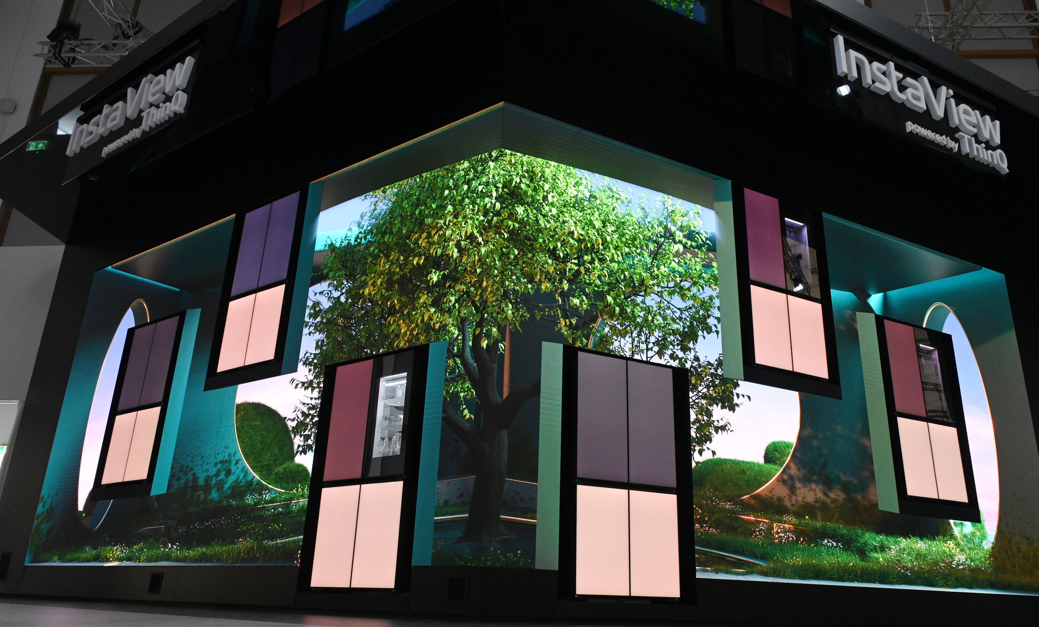 전시존에는 자연의 빛과 소리를 기반해 '가전이 아트가 되는' 아나모픽 영상 상영과 영상 속 LED Wall이 형형색색 변화할 수 있게 구성을 해