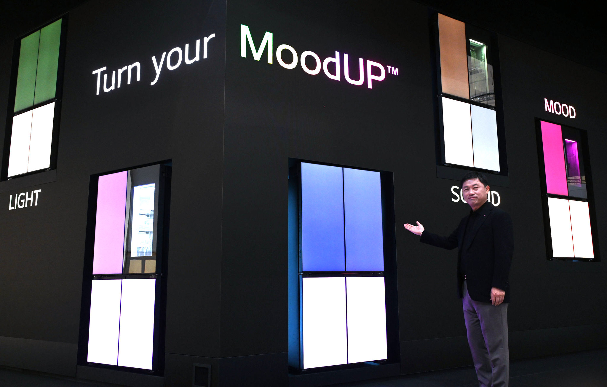그래서 LG전자는 이번에 LG 디오스 오브제컬렉션 신제품에 'Mood UP' 기술을 적용해 물리적 도어 패널 교체 없이도 손쉽게 컬러 변경을 할 수 있는 새로움을 보여줬습니다. 표면에 LED 광원을 활용한 도광판을 적용해 색상을 자유롭게 만들 수 있게 한 것입니다.