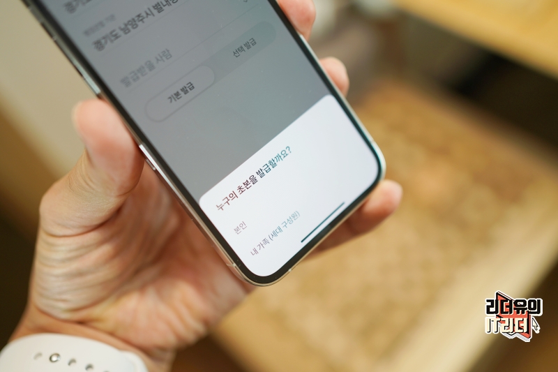발급 받을 사람을 선택하고 본인, 내 가족 중 하나를 선택합니다.