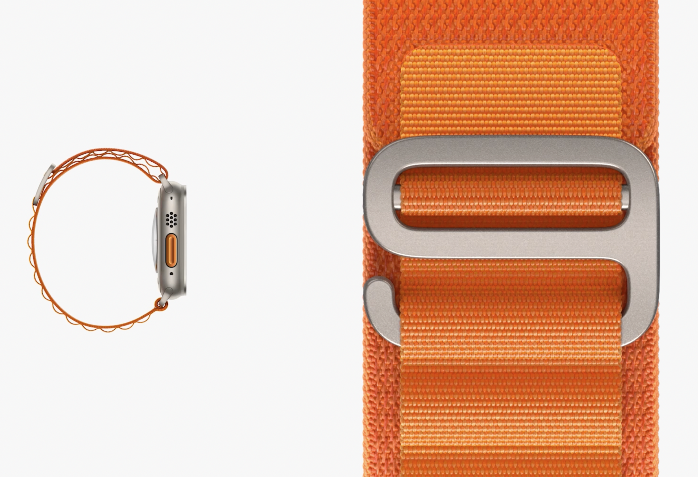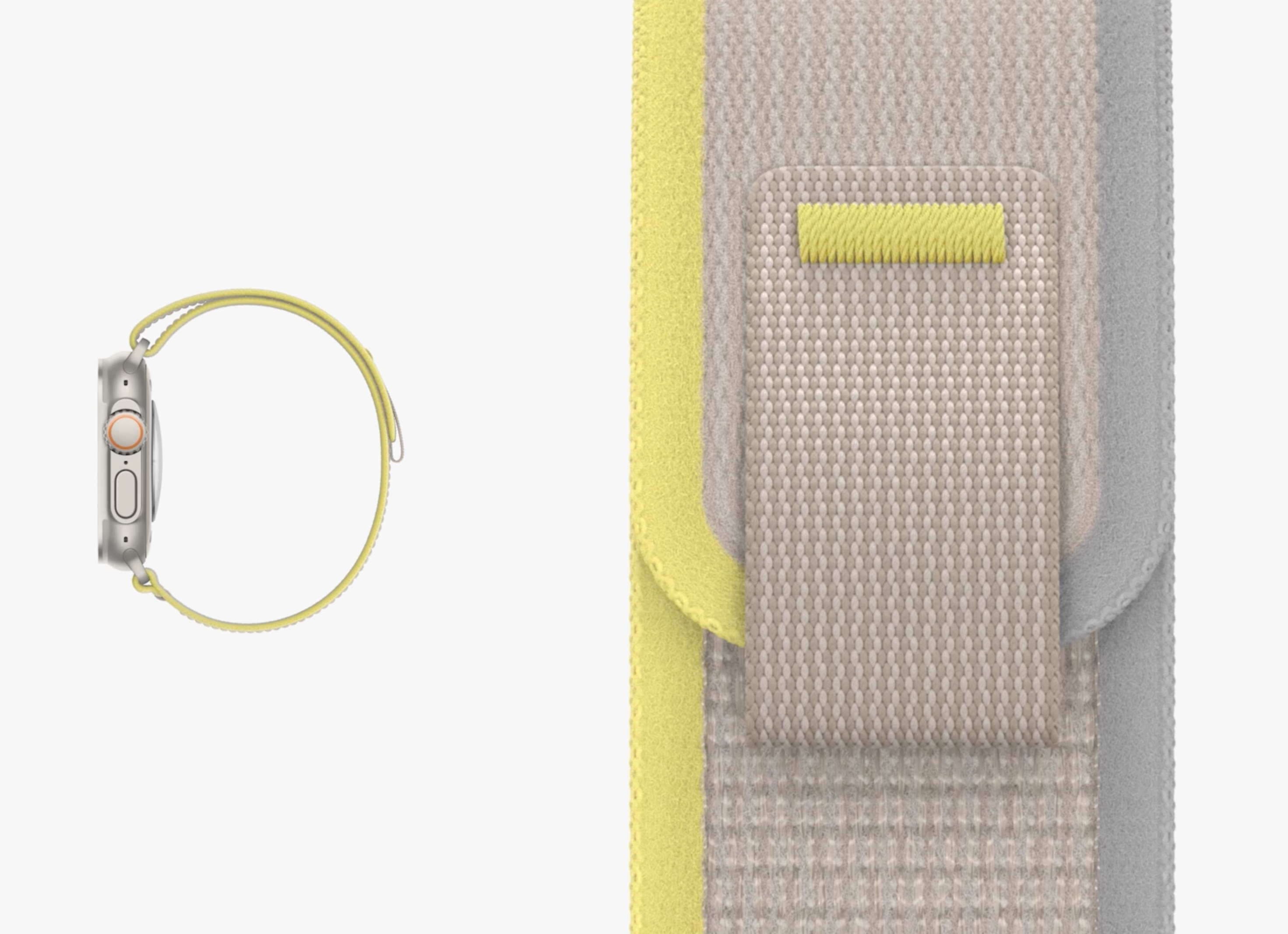 애플워치 울트라는 아웃도어 스포츠 전용으로 더욱 개성있는 신규 밴드를 준비했습니다. 달리기 선수를 위해 트레일 루프 밴드를 선보였는데요. 애플워치 밴드 중에서 가장 얇은 디자인을 가지고 있습니다. 가볍고 최적의 핏으로 조일 수 있게 준비되어 있습니다.