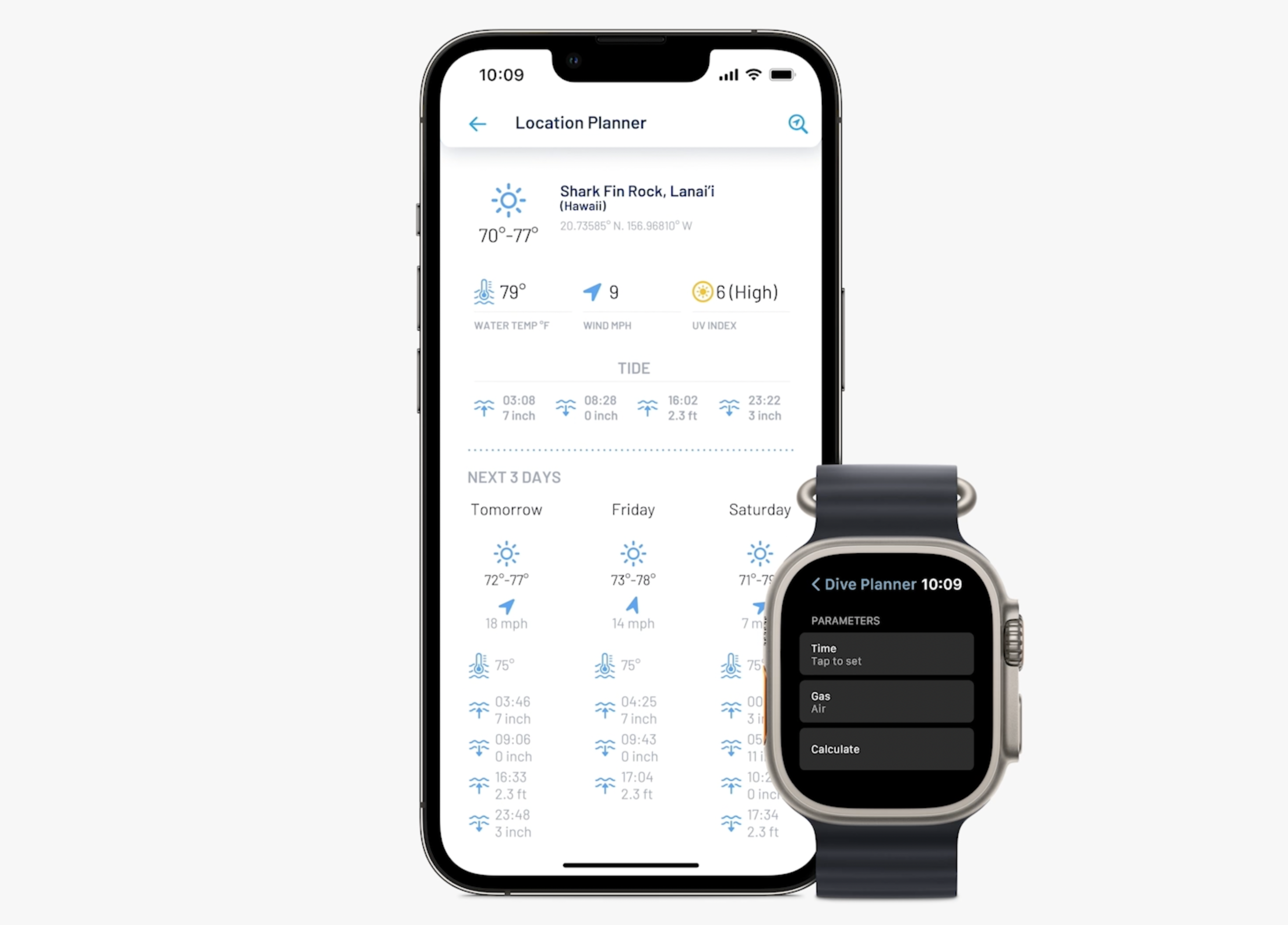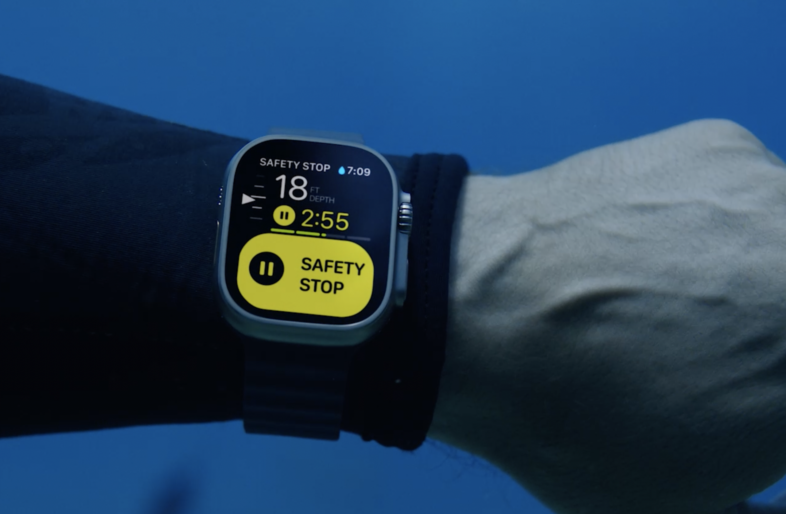 이번 애플워치 울트라는 카이트서핑, 웨이크보딩과 같은 익스트림 스포츠는 기본이고 새로운 Oceanic+ 앱과 함께 수심 최대 40미터까지 스쿠버다이빙을 할 수 있게 준비되었습니다. 100m 방수 등급을 가지고 있고 MIL-STD 810H 인증을 받았습니다.