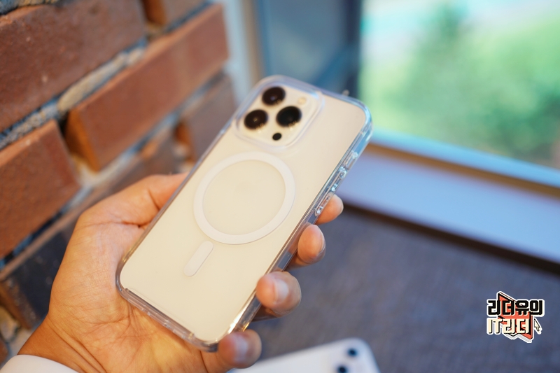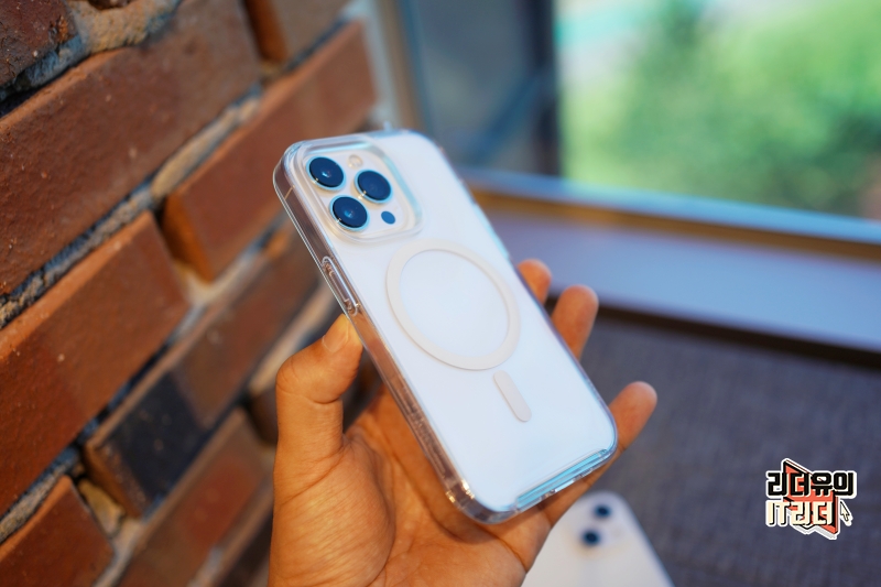 가장 기본이라 할 수 있는 아이폰14 프로 클리어 케이스 입니다. 클리어 케이스의 매력은 원래의 색 느낌을 보여주기 때문에 가장 깨끗하게 사용할 수 있습니다. 그리고 맥세이프 기능이 있으면 뒤에 원형의 라인이 보여서 아쉬운데요. 일반 클리어 케이스는 그런 부분이 없어서 더욱 깨끗한 디자인 매력을 느낄 수 있습니다.