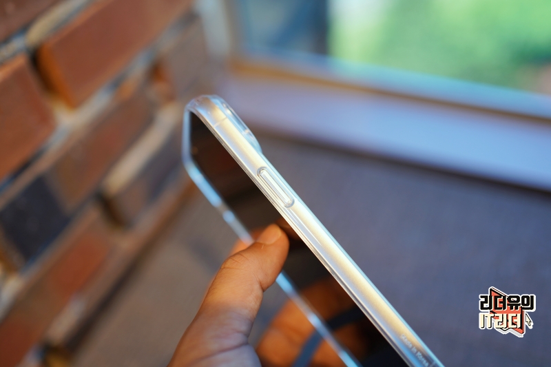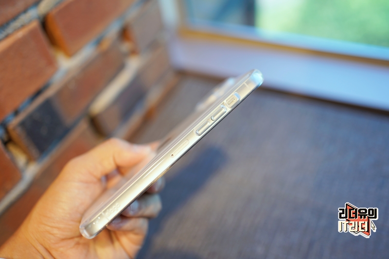 전면 테두리 영역도 살짝 더 올라와 있는 디자인이라 안전하게 사용할 수 있는 투명 케이스 입니다.