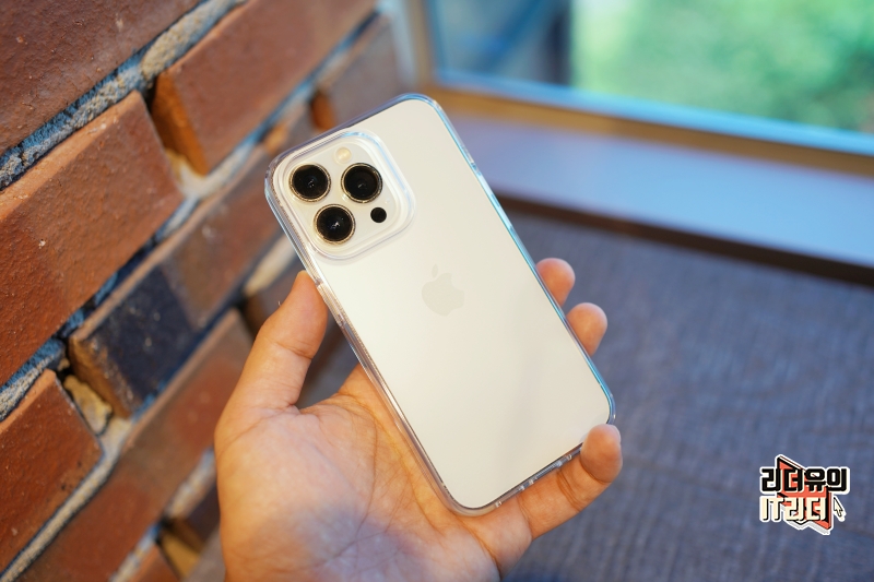 아이폰14 프로가 아닌 아이폰13 프로에 장착해 봤는데요. 전체적인 사이즈가 같아서 잘 맞아 떨어집니다. 다만 카메라 영역은 아이폰14 프로 영역이 크다는 걸 장착해 보면 알 수 있습니다.