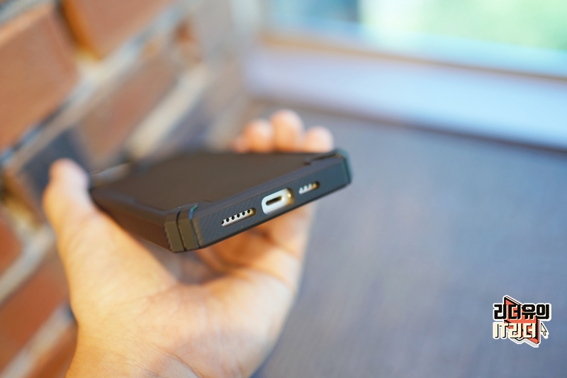 그리고 유연한 TPU 소재를 사용해 하단부 영역도 완벽하게 보호되는 디자인입니다. 전체적으로 하드한 케이스의 성향을 가지고 있지만 부드럽게 장착하고 사용할 수 있는 매력을 갖추고 있습니다.