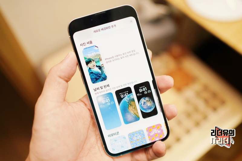 아이폰 iOS16 잠금 화면은 종류가 다양합니다. 사진, 사람, 사진 셔틀, 이모티콘, 날씨, 천체, 색상 등으로 개성있게 꾸밀 수 있습니다.