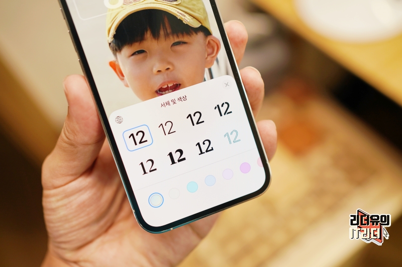 그리고 서체 및 색상 지정도 가능합니다. 8가지 서체와 다양한 색상 및 농도까지 설정 가능해 개성있는 아이폰 잠금 화면을 꾸밀 수 있습니다.