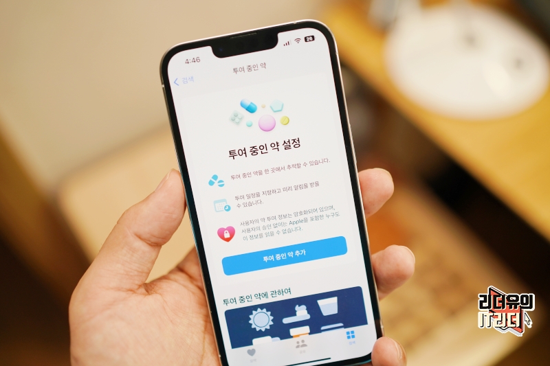 아이폰 iOS16에서는 건강앱에서 투여 중인 약을 관리할 수 있게 지원합니다. 건강앱의 검색 메뉴로 가면 투여 중인 약 메뉴가 있습니다.