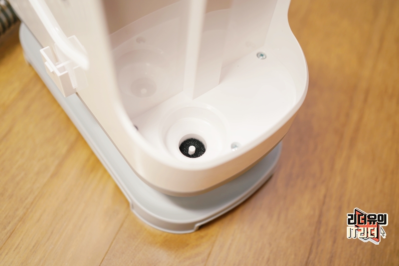 청수통 아래는 이렇게 마개가 닫히는 부분이 있습니다. 스크루 캡이 구성품으로 들어 있으니 물을 넣고 여기를 잠궈 주면 됩니다.