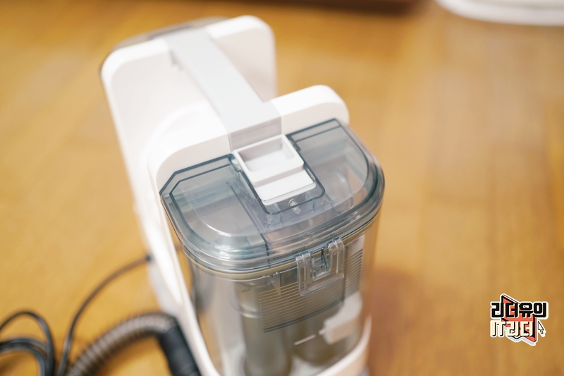 위쪽에는 청소된 오물이 빨려 들어가는 걸 볼 수 있게 투명 플라스틱으로 감싸져 있습니다.