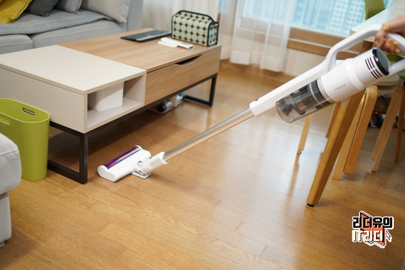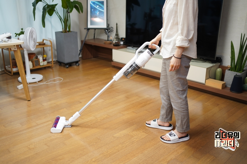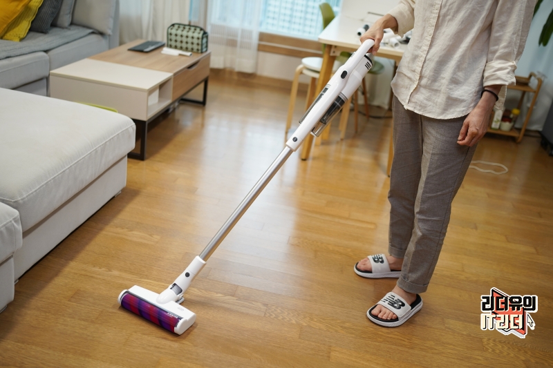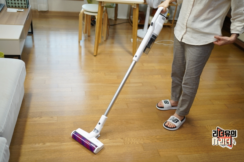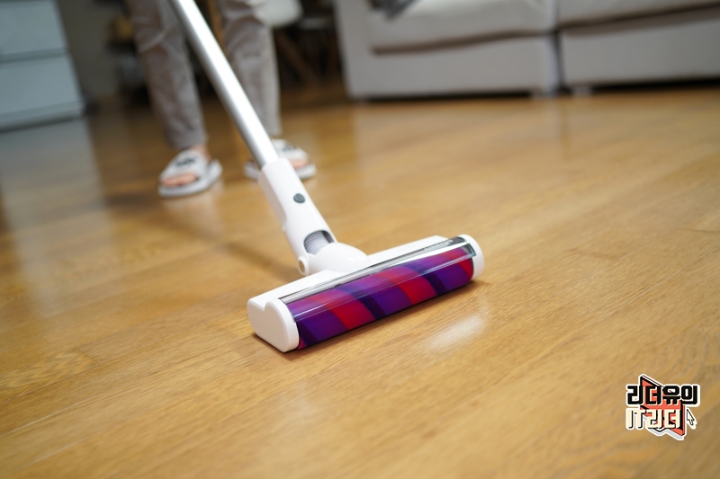 청소를 해보면 그립감도 좋고 편안한 핸들링이 좋습니다. 롤브러시이기 때문에 힘을 들이지 않아도 앞으로 가고 청소도 깔끔하게 되는 걸 육안으로 확인할 수 있습니다.