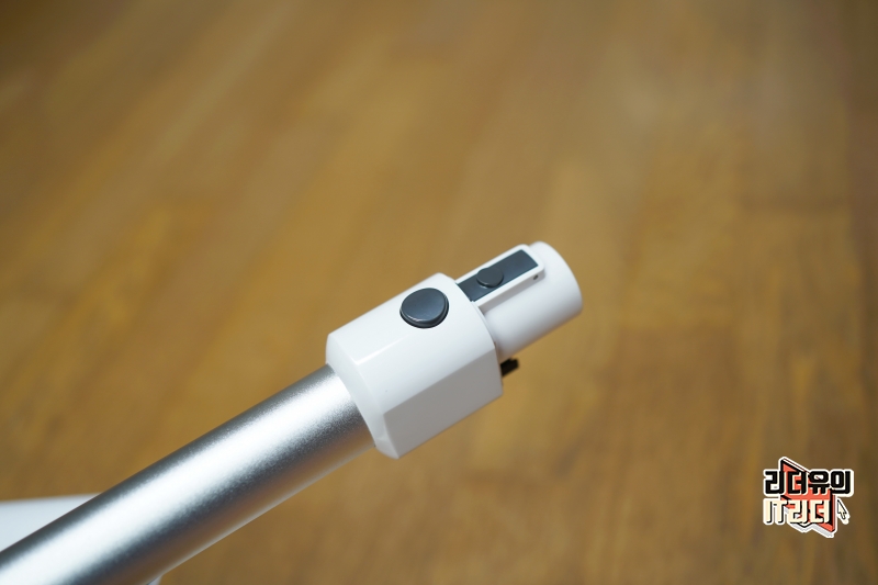 위에는 전원 버튼, 아래는 흡입력을 3단계로 조절할 수 있는 버튼입니다.