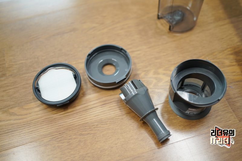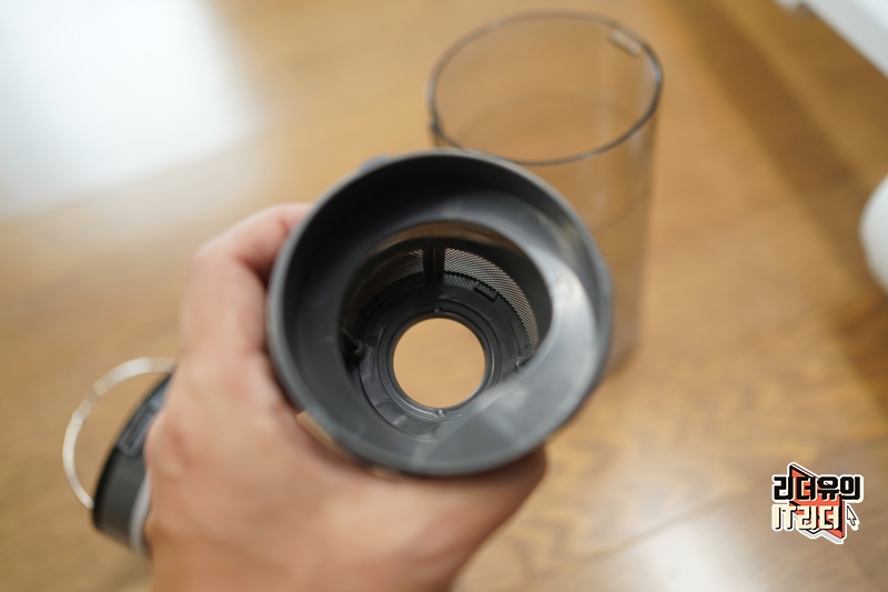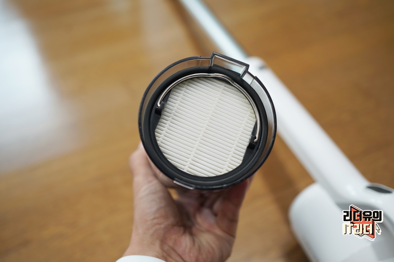 안쪽에 싸이클론 필터는 필터 관을 통해 더 잡은 먼지를 걸러내는 역할을 합니다.