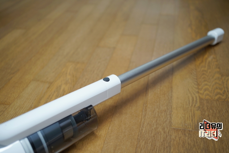 기본 스탠드 청소기로 사용할 때는 연장봉을 연결해 사용하면 됩니다. 메탈 실버로 고급스러운 디자인 포인트를 주고 있습니다.