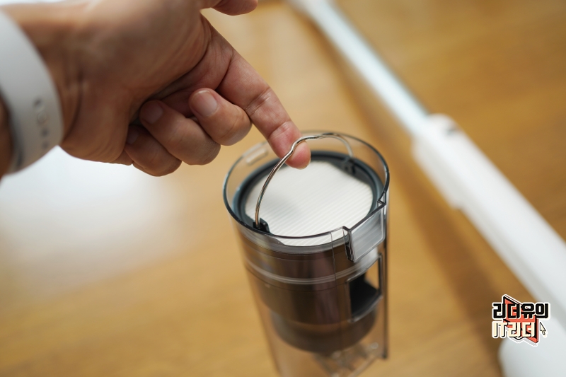 먼지통은 손잡이를 잡고 쭉 잡아빼면 되는데요. 5단계 필터시스템을 확인해 볼 수 있습니다.