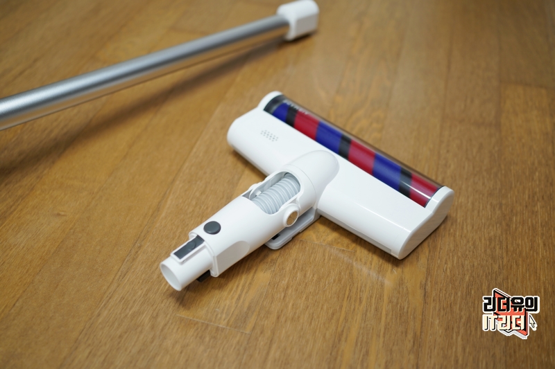 메인 브러시인 소프트 롤 브러시 입니다. 요즘 유행하고 있는 브러시 방식이죠. 장판, 마루, 타일, 단단한 바닥, 단모 카펫 등을 청소할 때 사용하면 되는 브러시 입니다. 바닥에 밀착되어 작은 먼지까지도 빨아들여 깨끗한 청소를 할 수 있습니다.