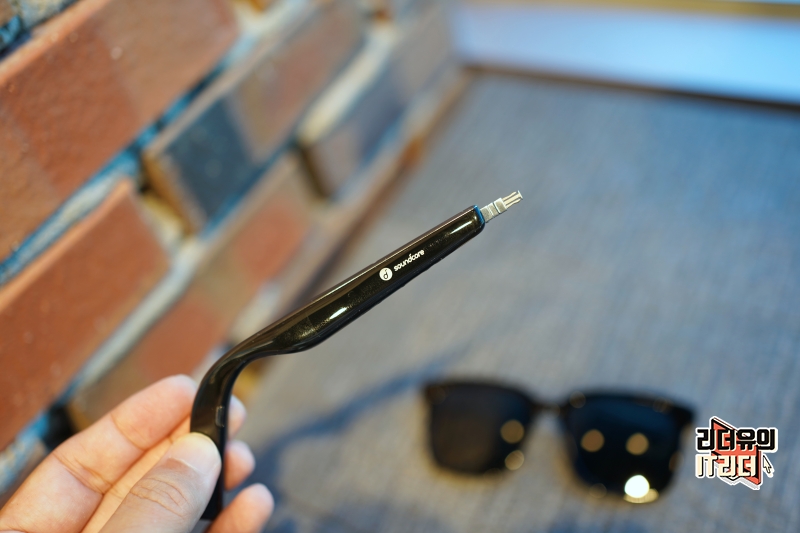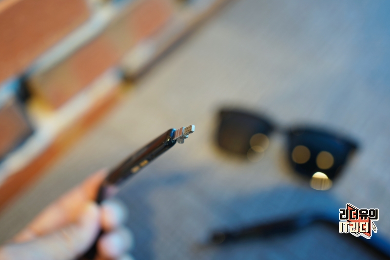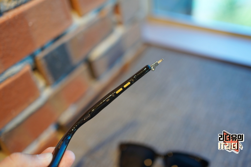 앤커 사운드코어 사운드 선글라스의 핵심은 안경 다리에 있습니다. 안경 다리가 블루투스 스피커라고 보시면 되는데요. 최대한 슬림하게 만들어져 있기 때문에 약간 도톰만 할 뿐 이상해 보이는 안경 다리는 아닙니다.