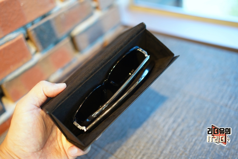 구성품으로 제공되는 접이식 안경 케이스 입니다. 일반적인 패션 안경 케이스처럼 준비되어 고급스럽고 안전한 휴대를 할 수 있습니다.