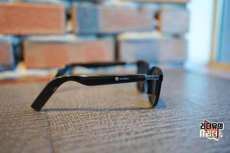 안경 다리에는 사운드코어(soundcore) 라고 새겨져 있고 이 영역에 터치와 스와이프를 인식할 수 있게 지원해 플레이, 정지, 통화, 다음곡, 이전곡, 볼륨 조절 등을 할 수 있습니다.