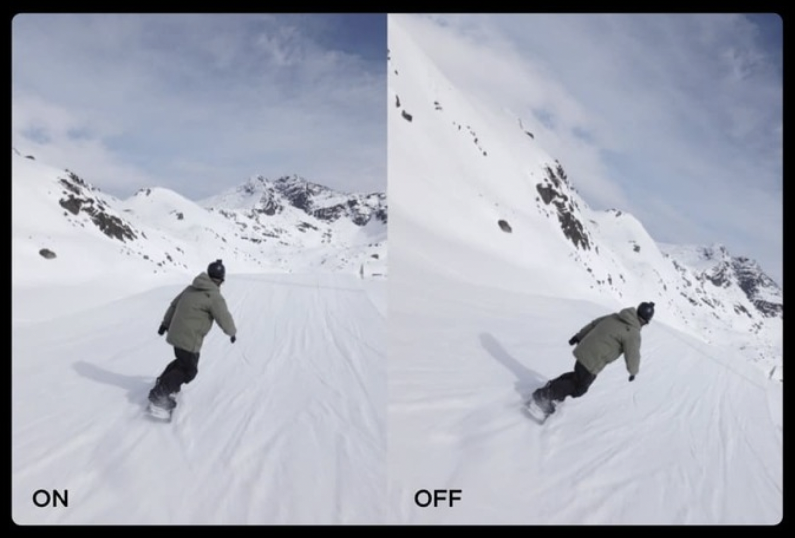 DJI 오즈모 액션3도 고프로와 마찬가지로 수평 기울기를 보정해주는 HorizonSteady 기능이 적용되었습니다. 360도 회전해도 수평을 잡아주기 때문에 틀어지는 현상 없이 영상 촬영이 가능합니다.