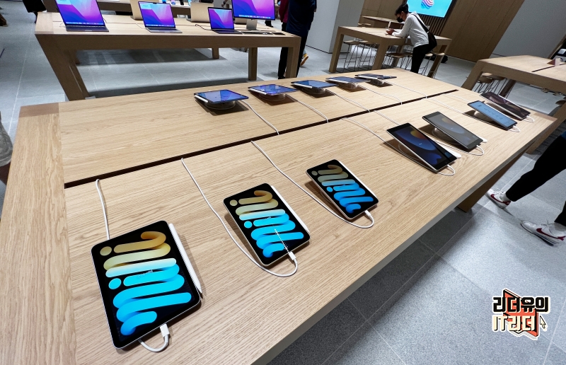 그리고 다양한 종류의 아이패드들이 모아져 있습니다. 아이패드 같은 경우는 사이즈별 고민, 종류에 따라 고민 등 여러가지 선택 장애가 있는데요. 현장에서 보면 자신의 사용 목적에 맞는 제품을 비교해 가면서 찾을 수 있을 것입니다.