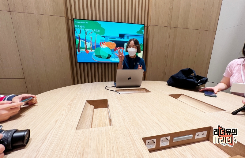 애플 잠실은 Today at Apple을 조금 더 고객들과 밀접하게 할 수 있도록 준비되어 있습니다. 원형의 테이블에 모여서 교육을 받는데요. 애플 전문가들의 다양한 교육 프로그램들을 무료로 받을 수 있으니 최고의 시간이 될 것입니다.