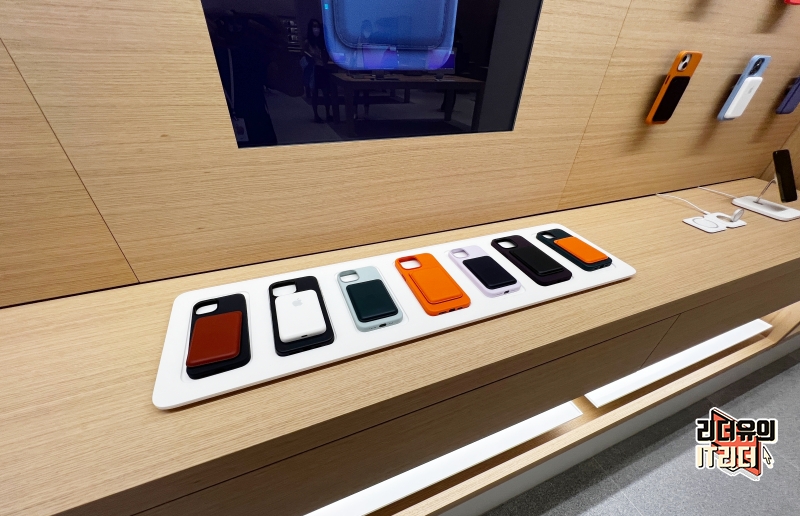 맥세이프 보조배터리도 있고 맥세이프 카드 지갑도 있으니 붙여 보면서 아떤 느낌인지 리얼하게 확인이 가능합니다.