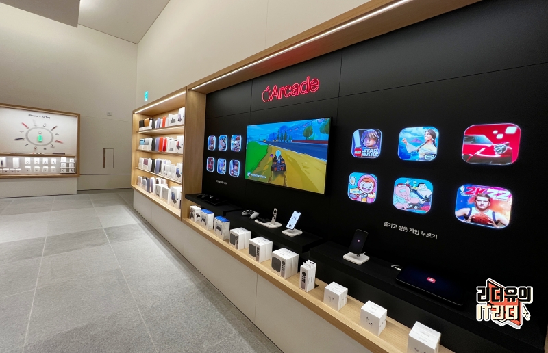 그리고 애플의 게임 서비스인 애플 아케이드를 체험해 볼 수 있는 공간이 있습니다. 애플 아케이드는 컨트롤러, 애플 TV 리모컨 등으로 다양하게 조작이 가능하니 어떤 게임을 할 수 있는지 경험해 보시면 좋을 것 같습니다.