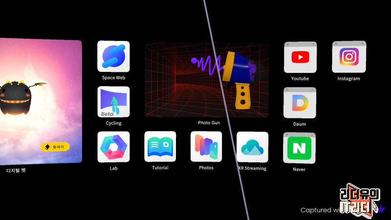 네뷸라 Nebula 기능은 크게 두가지가 있습니다. AR스페이스와 에어 캐스팅. AR스페이스는 AR 전용 홈화면으로 들어가고 그 안에서 다양한 메뉴 및 컨텐츠 접근이 가능합니다.