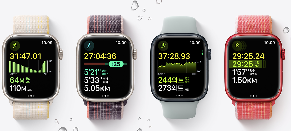 애플워치 SE2는 가성비 모델로 애플워치 시리즈8, 애플워치 울트라에 탑재된 것과 같은 프로세서인 S8 Sip를 가지고 있어 성능적으로 뛰어난 가치를 담고 있습니다. AOD는 없지만 충돌감지, 국제 로밍 도 가능합니다. 그리고 디자인적인 차이는 없지만 나일론 복합 소재를 갖춰 더욱 가벼워진 무게를 가지고 있습니다