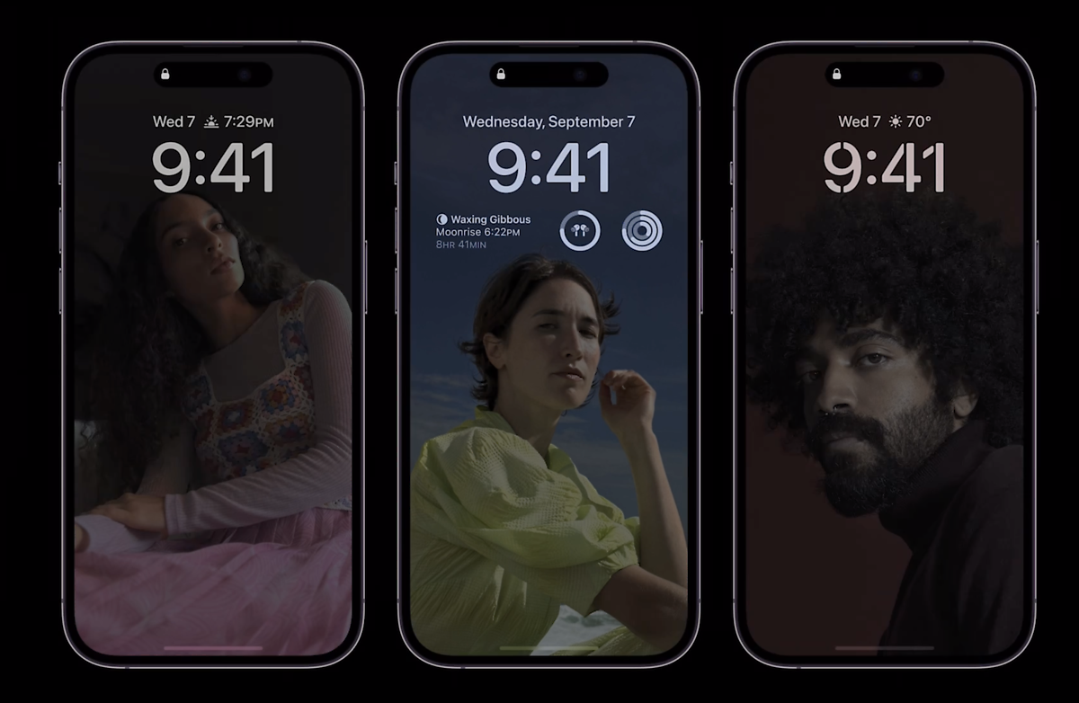사실상 이번 아이폰14 시리즈의 핵심은 아이폰 14 프로 라인업입니다. 아이폰14 프로와 맥스의 큰 특징은 AOD를 지원하는 디스플레이를 탑재했습니다. 상시표시형 디스플레이로 화면을 깨우지 않고도 알림, 시간 등을 볼 수 있는데요. 1Hz의 가변 재생률과 절전 기술을 바탕으로 구현이 됩니다.