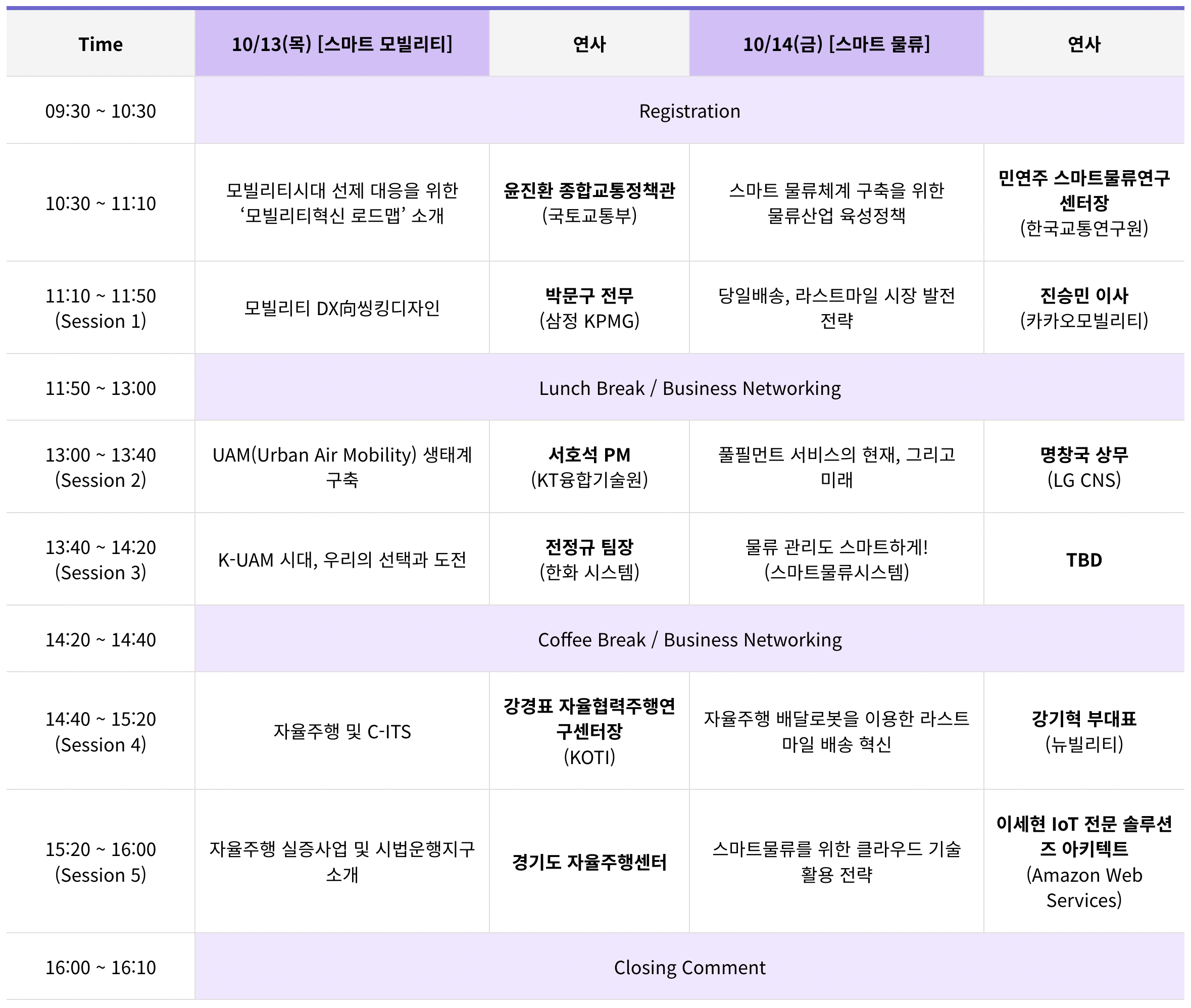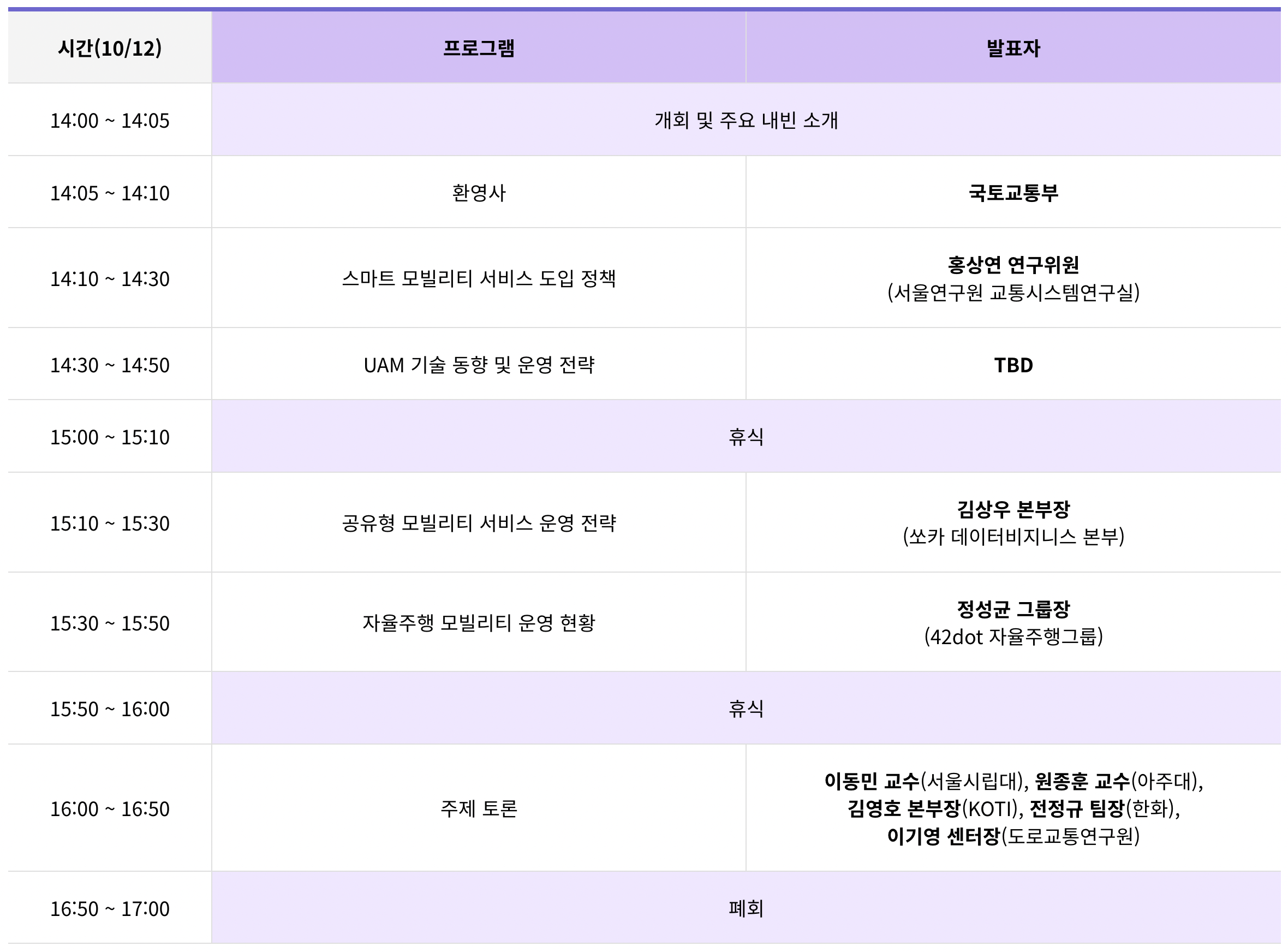 - 후원 : 서울특별시, 한국무역협회, 한국도로공사, 카카오모빌리티, 한국지능형교통체계협회, 한국교통안전공단, 한국인터넷진흥원, 한국교통연구원, 한국머신비전산업협회