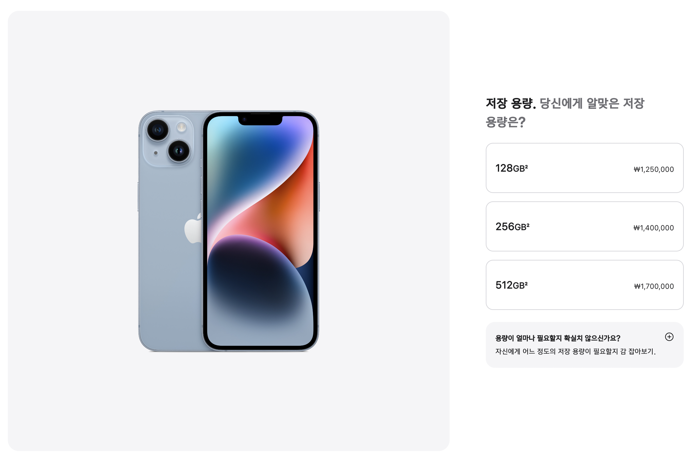 아이폰14 플러스 용량별 가격은 다음과 같습니다.