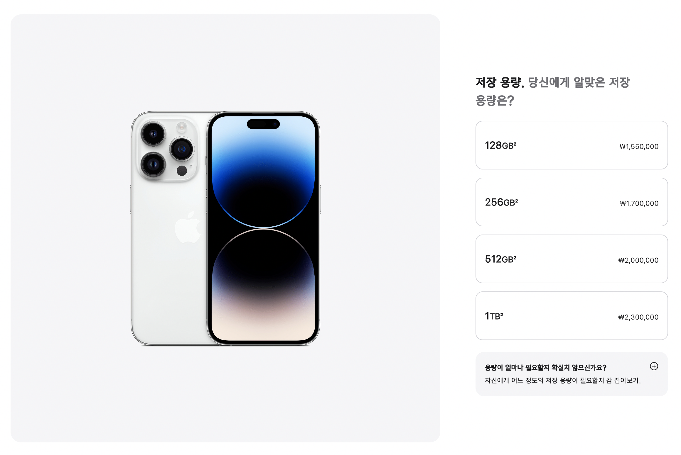 아이폰14 프로 용량별 가격은 다음과 같습니다.