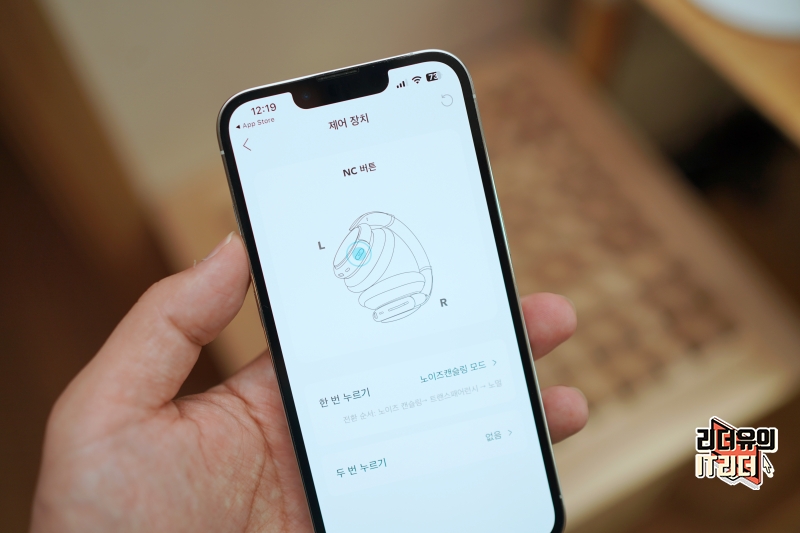 각종 컨트롤 버튼은 좌우에 배치되어 있습니다. 노이즈캔슬링 버튼이 있어서 외부소리 듣기, 노이즈캔슬링 모드, 끄기를 선택할 수 있고