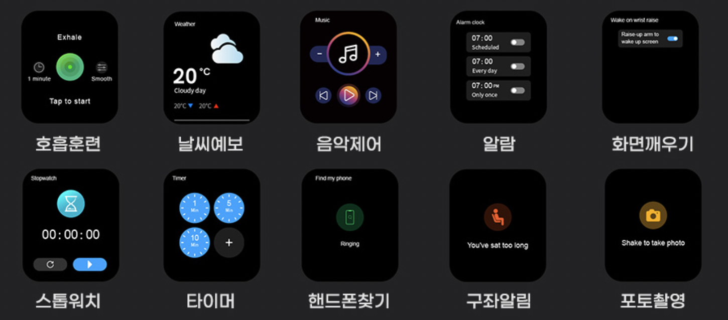 스마트워치니까 70종 운동모드 측정을 지원한다고 합니다. 그런데 고가의 스마트워치도 제대로 측정 못하는 경우들이 많아서 과연 얼마나 정확하게 측정해 줄지는 확인을 해봐야 할 것 같습니다. (제가 구입했으니 체크해서 알려드리겠습니다.)