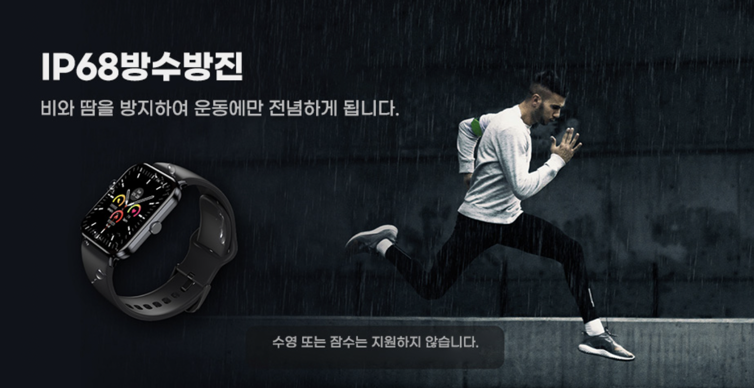 놀라운 점은 이 저렴한 스마트워치가 IP68 방수방진을 지원한다는 것입니다. 수영이나 물놀이에서 사용할 수 있는건 아니지만 비나 수분으로부터 안심하고 사용할 수 있습니다.