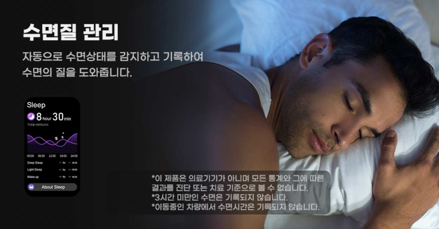 수면 추척도 지원합니다. 잠을 자는 동안 제대로된 수면을 하고 있는지 파악을 해준다고 합니다.
