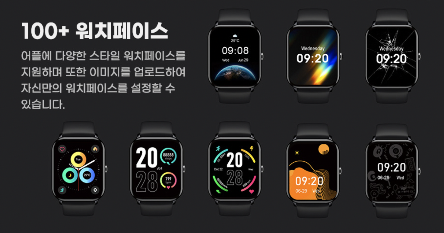 QCY 스마트워치 GTC가 놀라운 점은 저렴한 가격임에도 패셔너블한 가치를 충족하고 있다는 것입니다. 100개 이상의 워치페이스를 제공해 다양한 꾸미기를 할 수 있습니다.