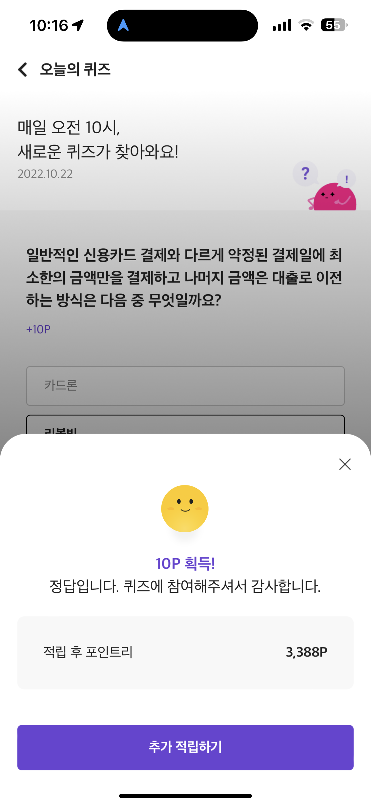 러브메이트 오늘의 퀴즈 문제는 일반적인 신용카드 결제와 다르게 약정된 결제일에 최소한의 금액만을 결제하고 나머지 금액은 대출로 이전하는 방식은 다음 중 무엇일까요? 입니다. 오늘 문제는 쉽지만 많이 실수할 수 있는 문제인데요.
