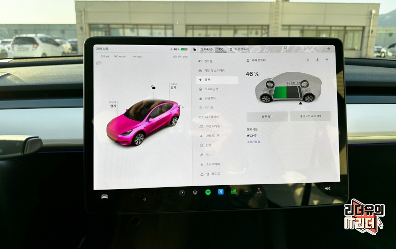 그리고 구리 모다아울렛 수퍼차저 (슈퍼차저)는 V3라서 고속 충전을 지원하는데요. 46% 충전이 되고 있을때 125kW로 충전이 되고 있습니다. 초고속 충전이 가능한 곳이라 근처에 사는 분들은 수시로 충전하시면 더욱 편하게 테슬라를 타실 수 있습니다.