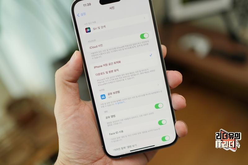 여기서 아이클라우드 (iCloud) 공유 사진 보관함 설정이 가능한데요.